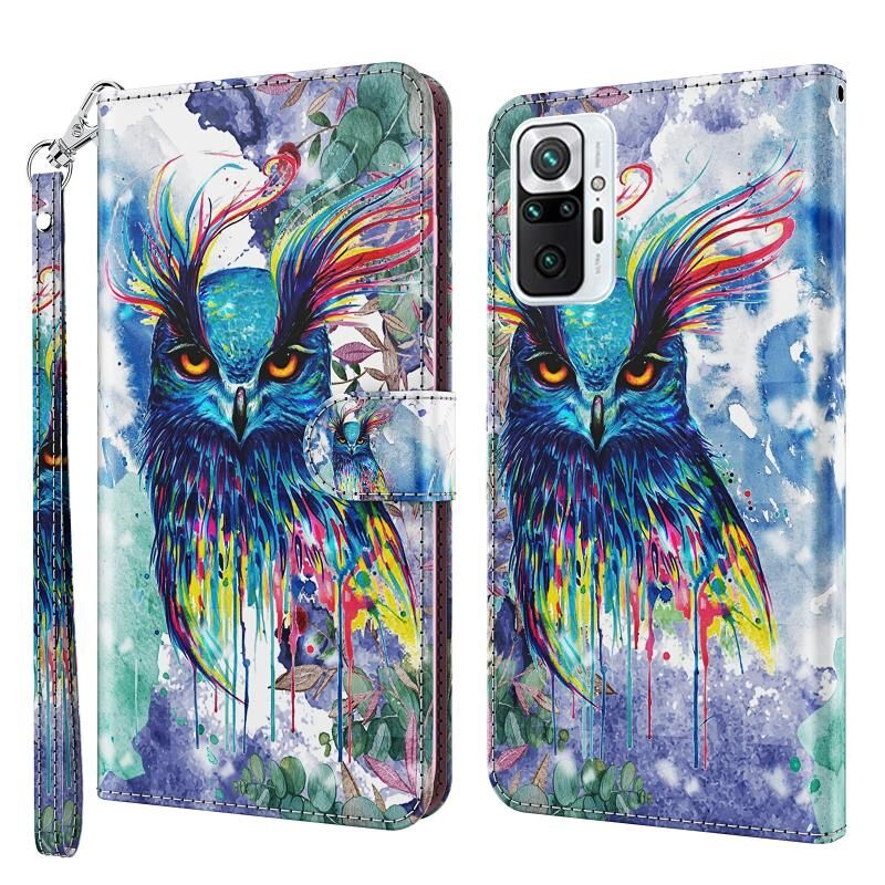 Θήκη τηλεφώνου για Xiaomi Redmi Note 10 Pro / 10 Pro Max, 3D ζωγραφική, μοτίβο TPU + Δερμάτινη PU (Ακουαρέλα Γούφου)