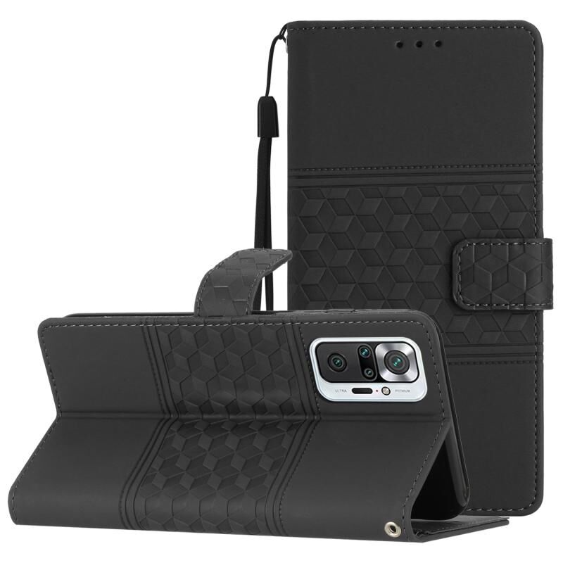 Για Xiaomi Redmi Note 10 Pro / 10 Pro Max Diamond ανάγλυφο δέρμα αίσθηση δέρμα τηλέφωνο υπόθεση με κορδόνι (μαύρο)