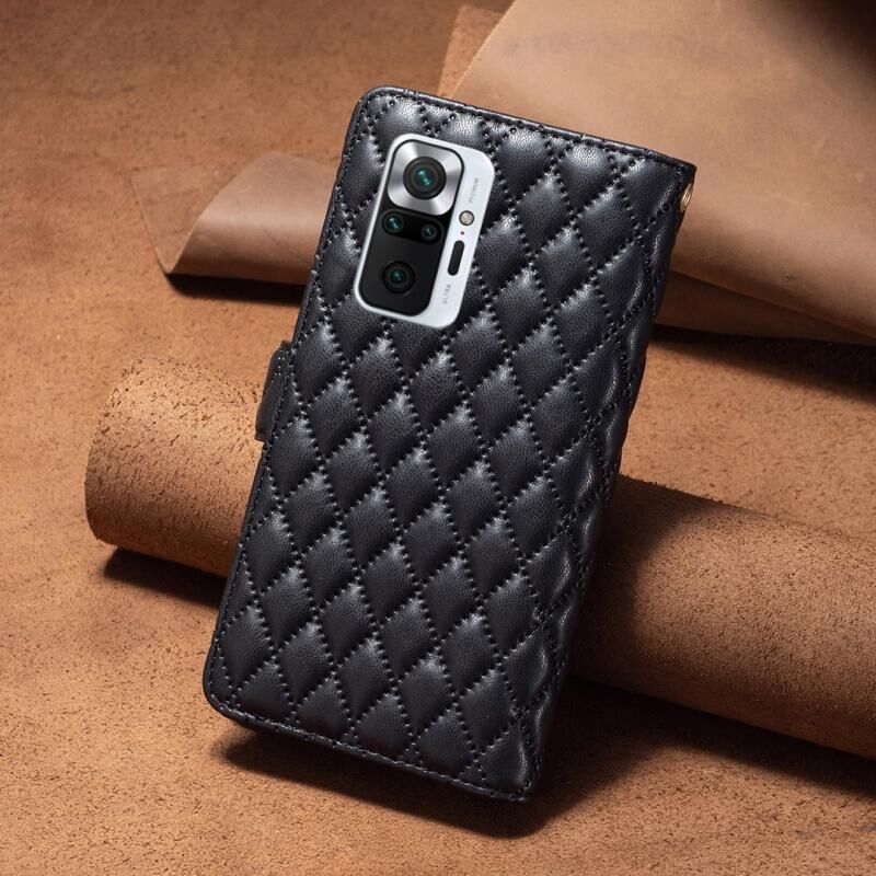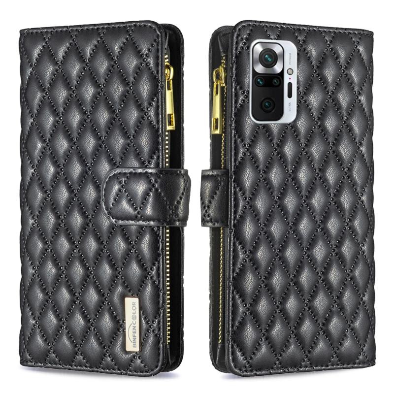 Για Xiaomi Redmi Note 10 Pro/10 Pro Max Δερμάτινη θήκη πορτοφόλι με φερμουάρ και διαμαντένιο σχέδιο. (Μαύρο)