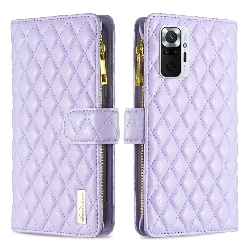 Για Xiaomi Redmi Note 10 Pro/10 Pro Max Δερμάτινη θήκη πορτοφόλι με φερμουάρ και διαμαντένιο σχέδιο. (Μωβ)