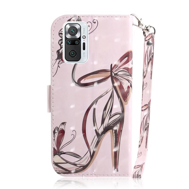 Θήκη δέρματος οριζόντιας αναδίπλωσης με μαγνητική έλξη και τρισδιάστατο σχέδιο για Xiaomi Redmi Note 10 Pro, με βάση στήριξης, θήκη καρτών, πορτοφόλι και κορδόνι (Πέταλο με ψηλοτάκουνα παπούτσια).