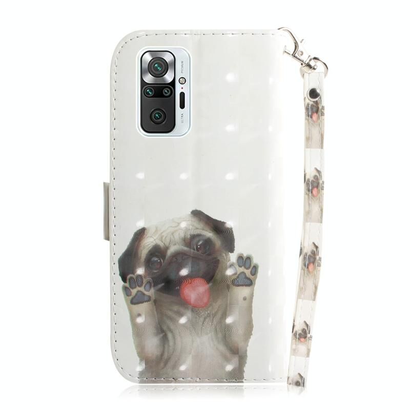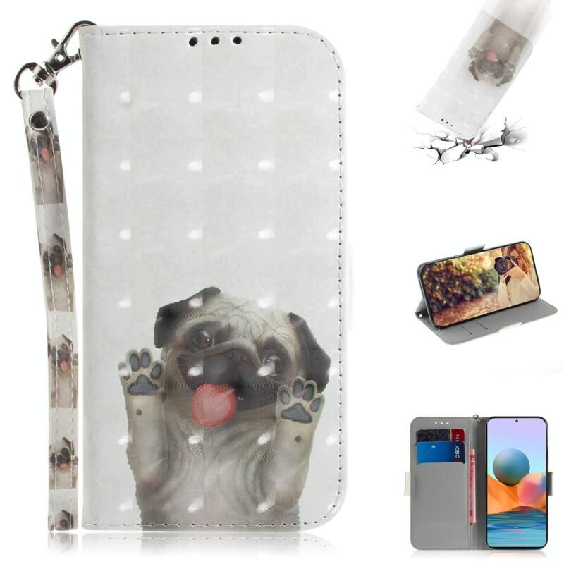 Θήκη δέρματος οριζόντιας αναδίπλωσης με μαγνητική έλξη και τρισδιάστατο σχέδιο για Xiaomi Redmi Note 10 Pro, με βάση στήριξης, θήκη για κάρτες, πορτοφόλι και κορδόνι (Pekingese Dag). (Κόκκινο)