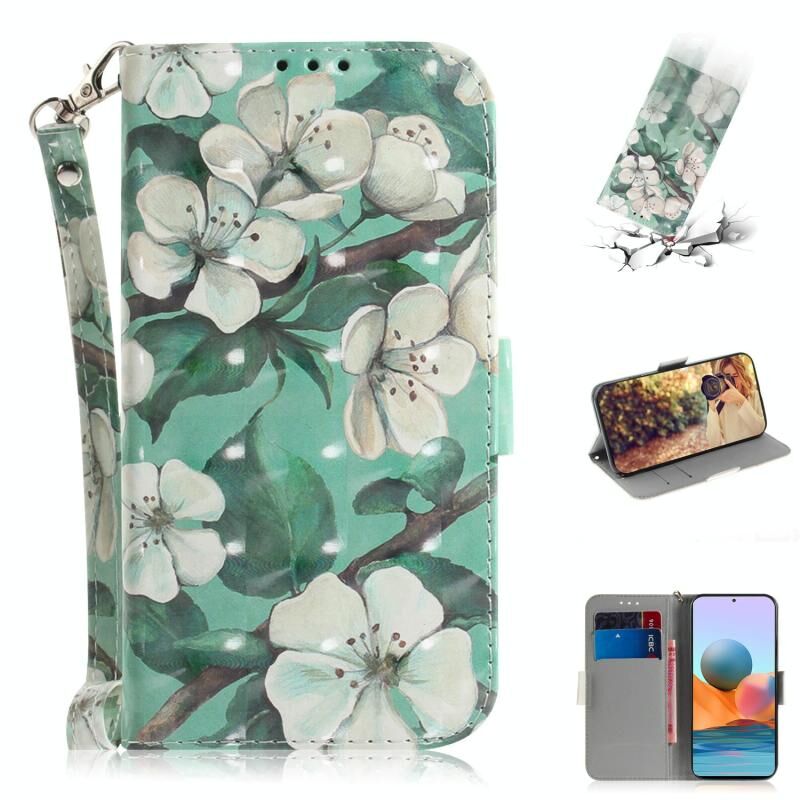 Θήκη δέρματος οριζόντιας αναδίπλωσης με μαγνητική έλξη και τρισδιάστατο σχέδιο για Xiaomi Redmi Note 10 Pro, με βάση στήριξης, θήκη για κάρτες, πορτοφόλι και κορδόνι (Ακουαρέλα Λουλούδια). (Κόκκινο)