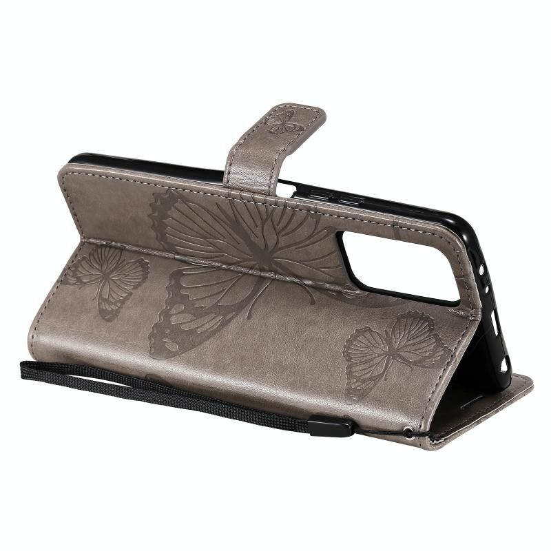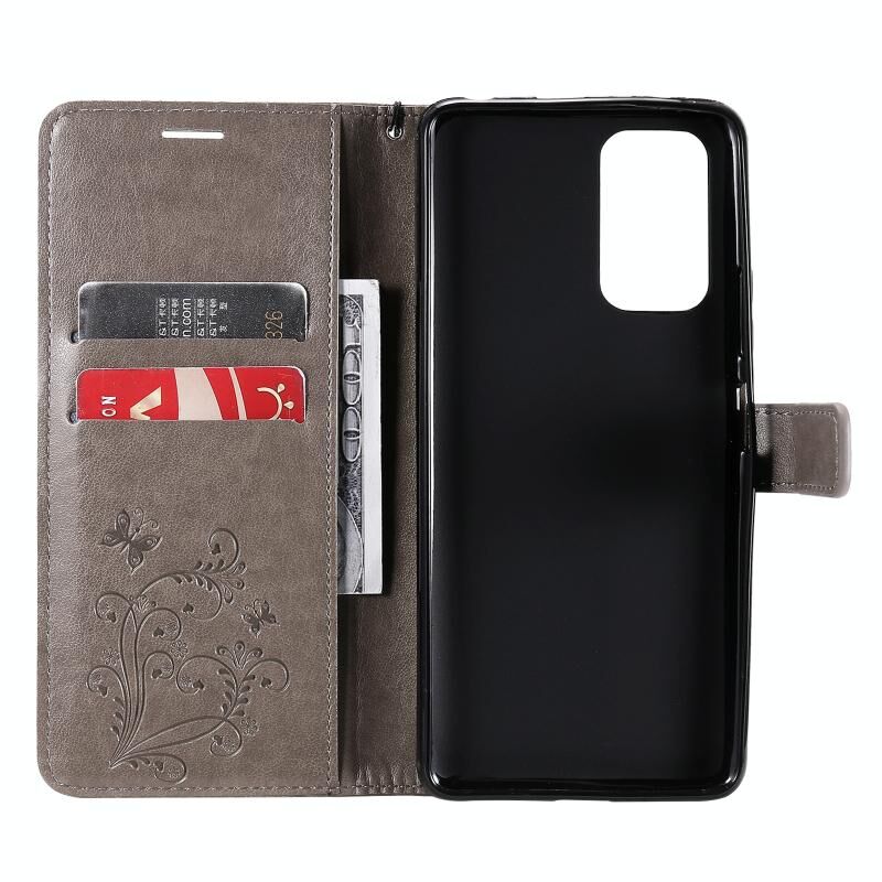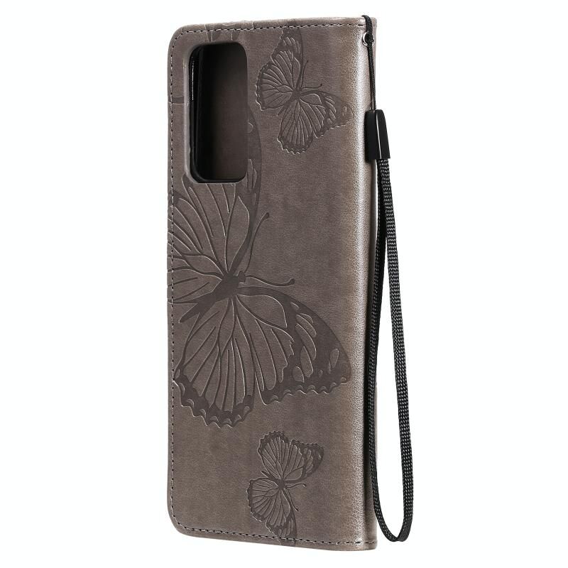 Για Xiaomi Redmi Note 10 Pro 4G Pressed εκτύπωση πεταλούδα μοτίβο οριζόντια Flip PU δερμάτινη θήκη με κάτοχο & υποδοχές καρτών & πορτοφόλι & Lanyard (γκρι)