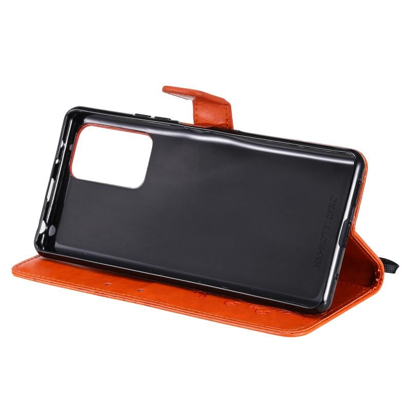 Για Xiaomi Redmi Note 10 Pro 4G Pressed εκτύπωση πεταλούδα μοτίβο οριζόντια Flip PU δερμάτινη θήκη με κάτοχο & υποδοχές καρτών & πορτοφόλι & Lanyard (πορτοκαλί)