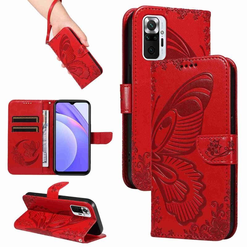 Θήκη τηλεφώνου από δέρμα με ανάγλυφο σχέδιο πεταλούδας Swallowtail για Xiaomi Redmi Note 10 Pro 4G (Μπλε)