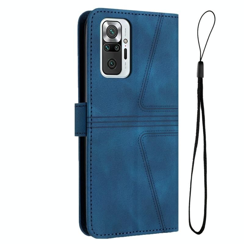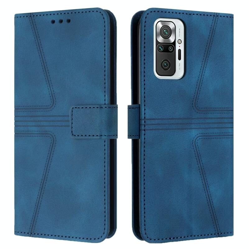 Για Xiaomi Redmi Note 10 Pro 4G Τρίγωνο στερεό χρώμα δερμάτινη θήκη τηλεφώνου (Μπλε)
