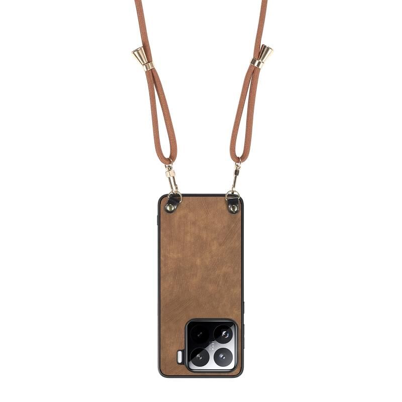 Για Xiaomi Redmi Note 10 Pro 4G Vintage δέρμα PC πίσω κάλυψη τηλέφωνο υπόθεση με λουράκι σταυρού (καφέ)