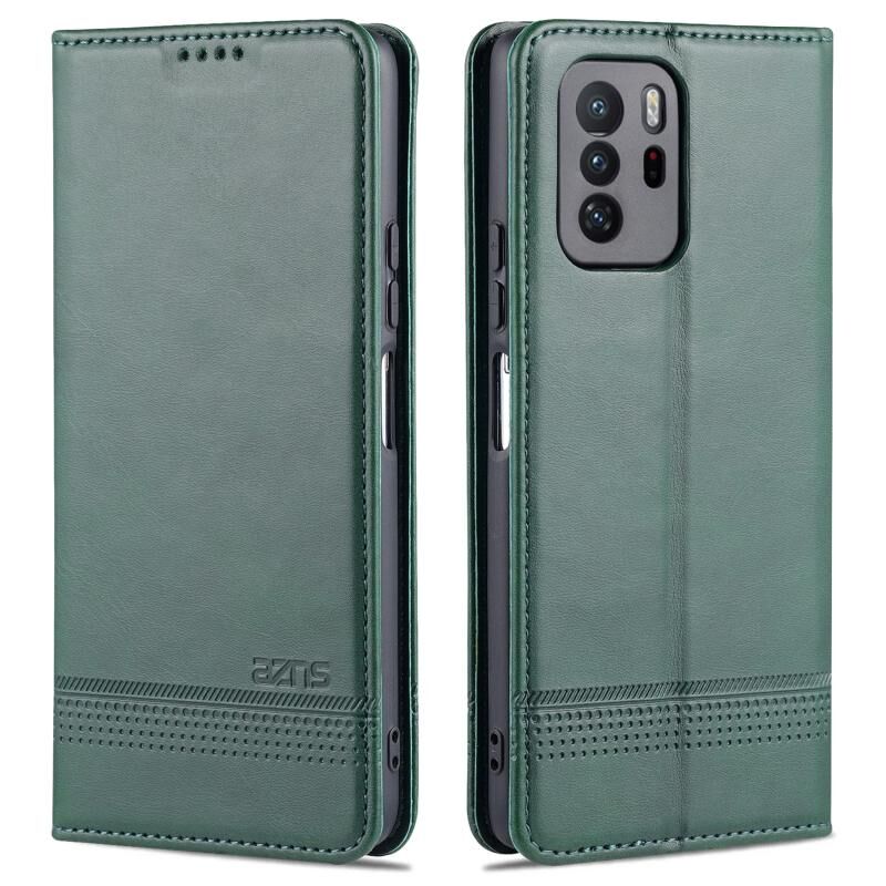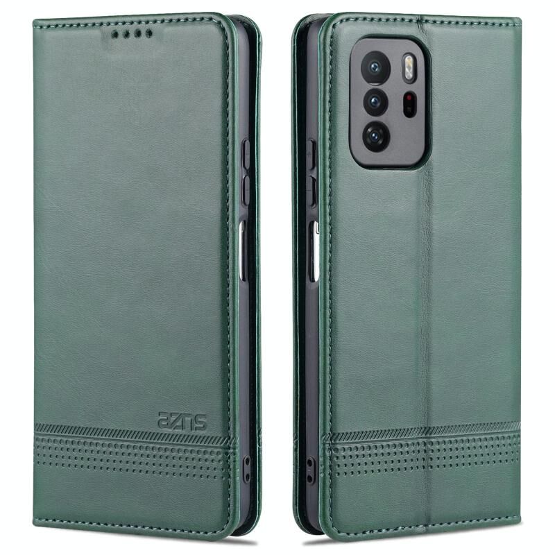 Για Xiaomi Redmi Note 10 Pro 5G AZNS Μαγνητικό μοσχάρι υφή οριζόντια Flip δερμάτινη θήκη με υποδοχές για κάρτες & κάτοχος & πορτοφόλι (σκούρο πράσινο) (AZNS)