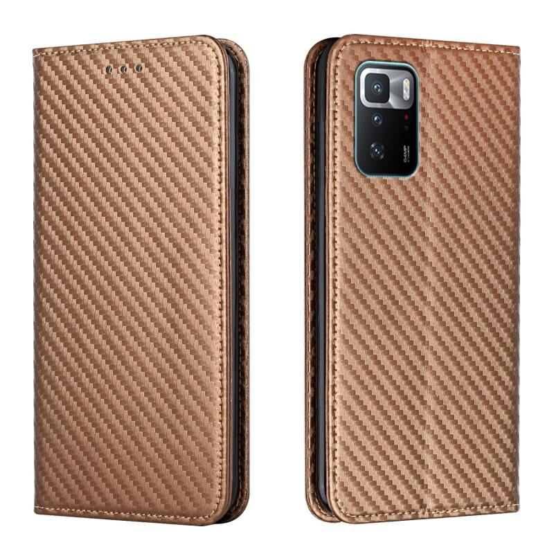 Για Xiaomi Redmi Note 10 Pro 5G Θήκη Δερμάτινη Flip με Υφή Άνθρακα (Καφέ)