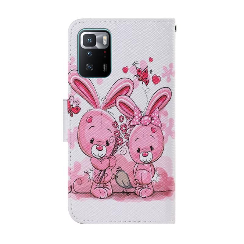 Θήκη τηλεφώνου δερμάτινη με πολύχρωμο σχέδιο (χαριτωμένο κουνέλι) για Xiaomi Redmi Note 10 Pro 5G. (Κόκκινο)