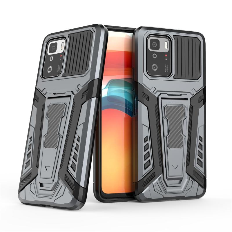 For Xiaomi Redmi Note 10 Pro 5G War Chariot Series Armor All-inclusive Shockproof PC + TPU Protective Case with Invisible Holder(Grey)