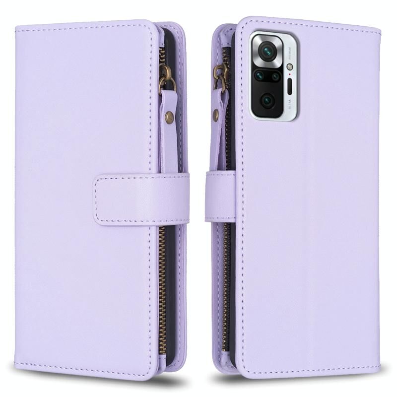 Για Xiaomi Redmi Σημείωση 10 Pro 9 Card Slots φερμουάρ πορτοφόλι δέρμα Flip υπόθεση τηλεφώνου (Light Purple)