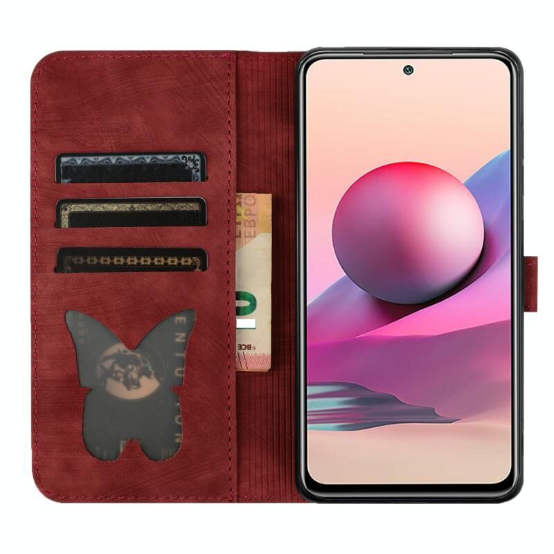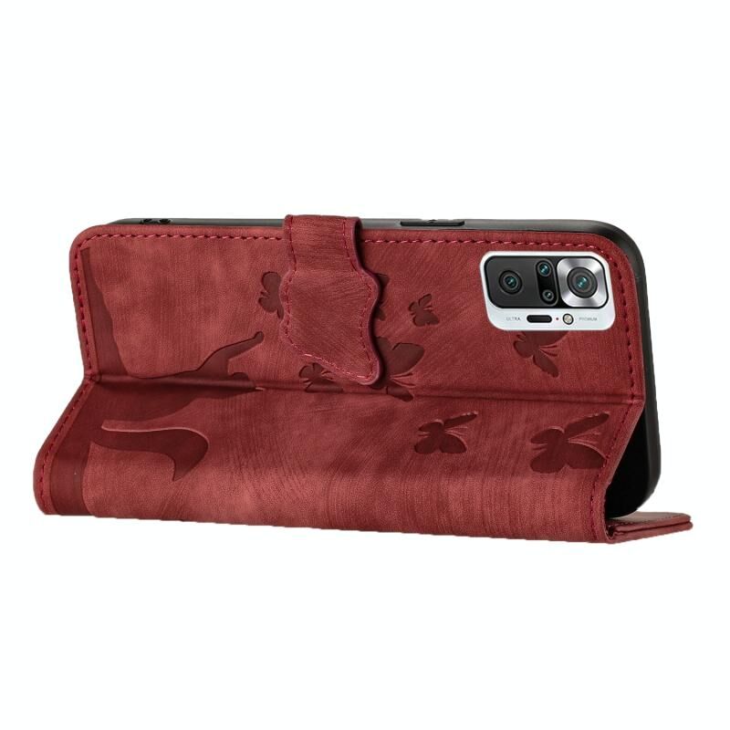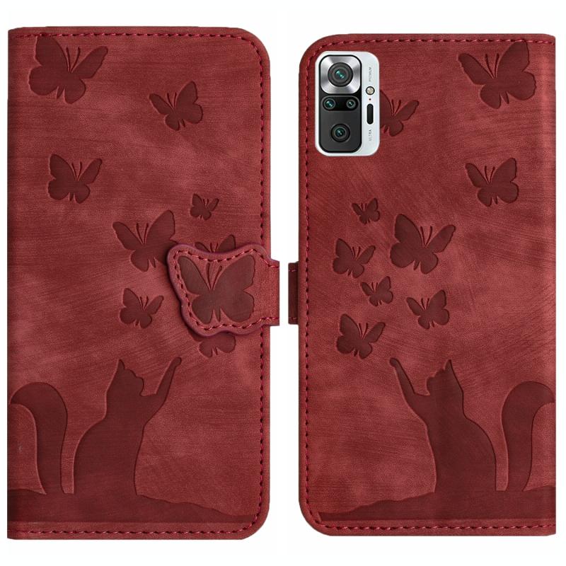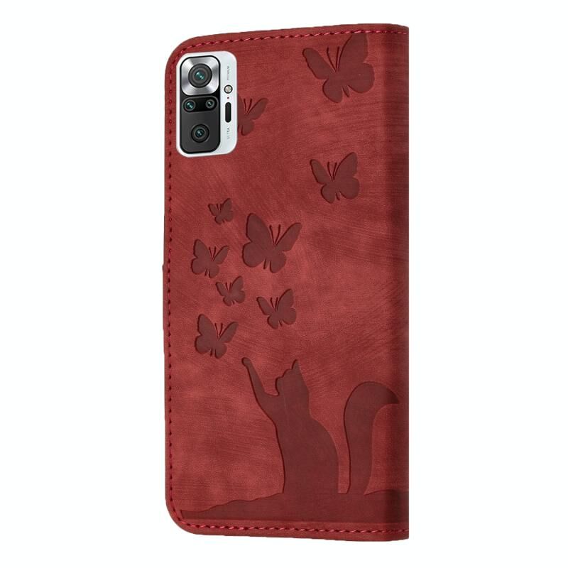 Θήκη δερμάτινη flip με ανάγλυφο σχέδιο γάτας για Xiaomi Redmi Note 10 Pro (Κόκκινο)