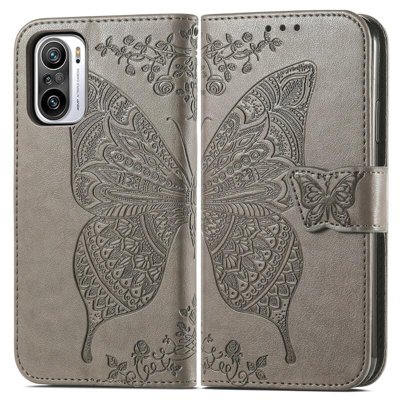 Για Xiaomi Redmi Note 10 Pro Πεταλούδα αγάπη λουλούδια ανάγλυφο οριζόντια Flip δερμάτινη θήκη με κάτοχο & υποδοχές για κάρτες & πορτοφόλι & κορδόνι (γκρι)