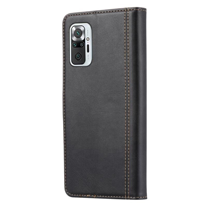 Για Xiaomi Redmi Note 10 Pro Calf Texture Double Fold Κούμπωμα οριζόντια Flip δερμάτινη θήκη με πλαίσιο φωτογραφιών & κάτοχος & υποδοχές καρτών & πορτοφόλι (μαύρο)
