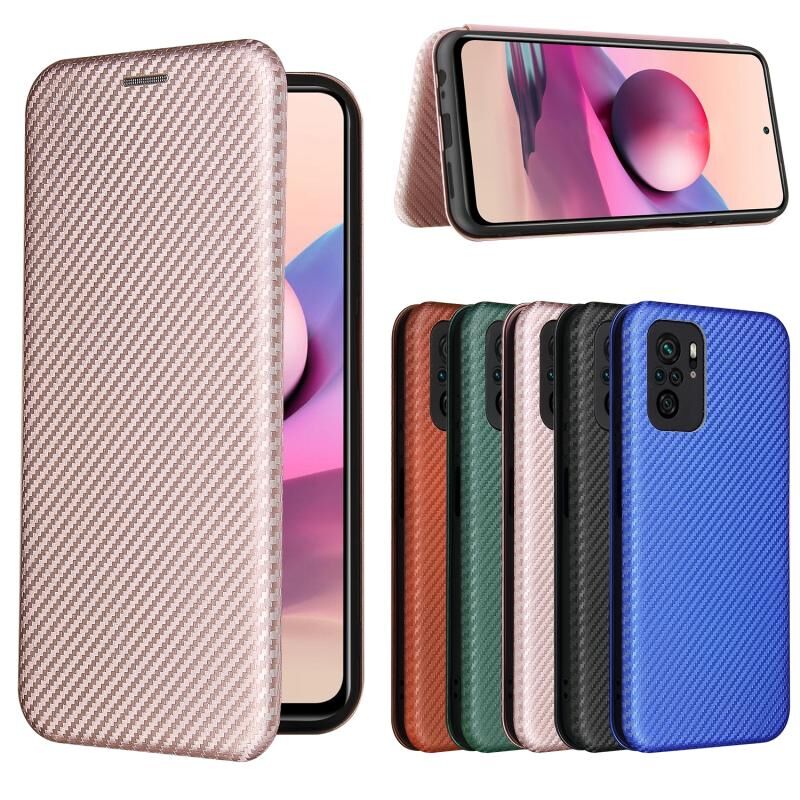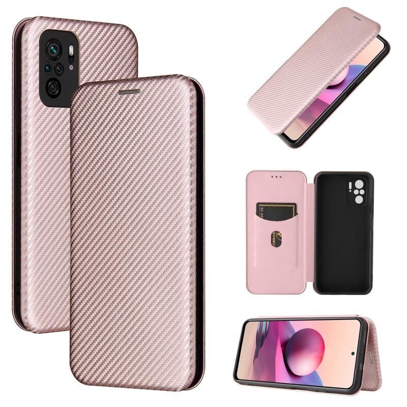 Για Xiaomi Redmi Note 10 Pro Carbon Fiber Texture Horizontal Flip TPU + PC + PU Leather Case με υποδοχή κάρτας (ροζ)