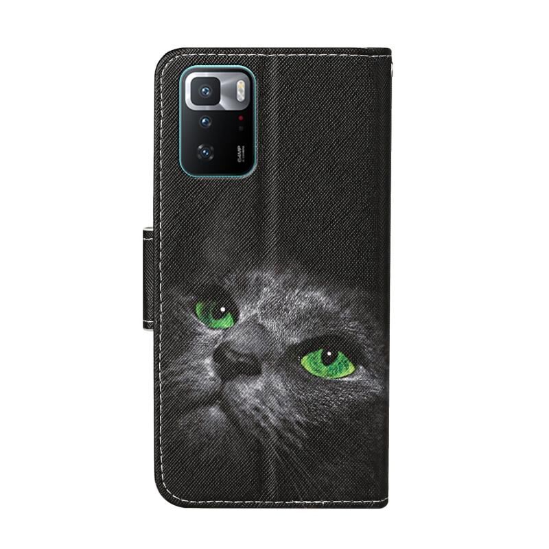 Θήκη δέρματος με σχέδιο πολύχρωμης ζωγραφικής τύπου flip για Xiaomi Redmi Note 10 Pro China (Μαύρη Γάτα)