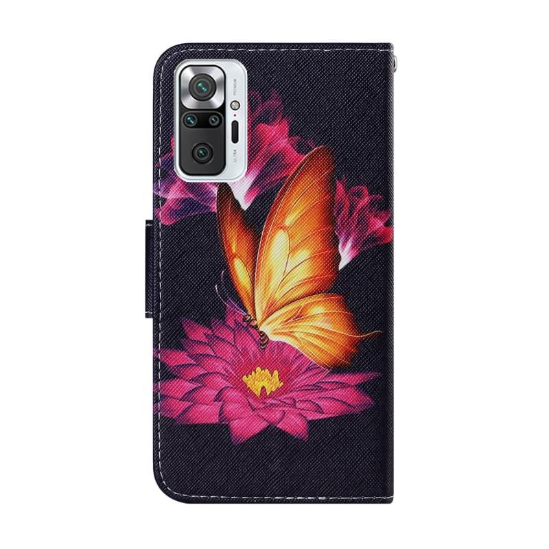 Θήκη για Xiaomi Redmi Note 10 Pro με έγχρωμο σχέδιο, οριζόντια αναδίπλωση, από δερματίνη PU με βάση στήριξης & θήκες για κάρτες & πορτοφόλι & κορδόνι (Μεγάλη Χρυσή Πεταλούδα)