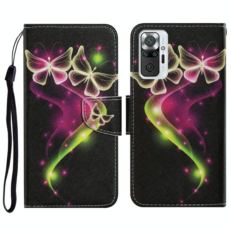Θήκη για Xiaomi Redmi Note 10 Pro με πολύχρωμο σχέδιο, οριζόντια αναδίπλωση από δερματίνη PU με βάση στήριξης & θήκες για κάρτες & πορτοφόλι & κορδόνι (Ζευγάρι Πεταλούδες)