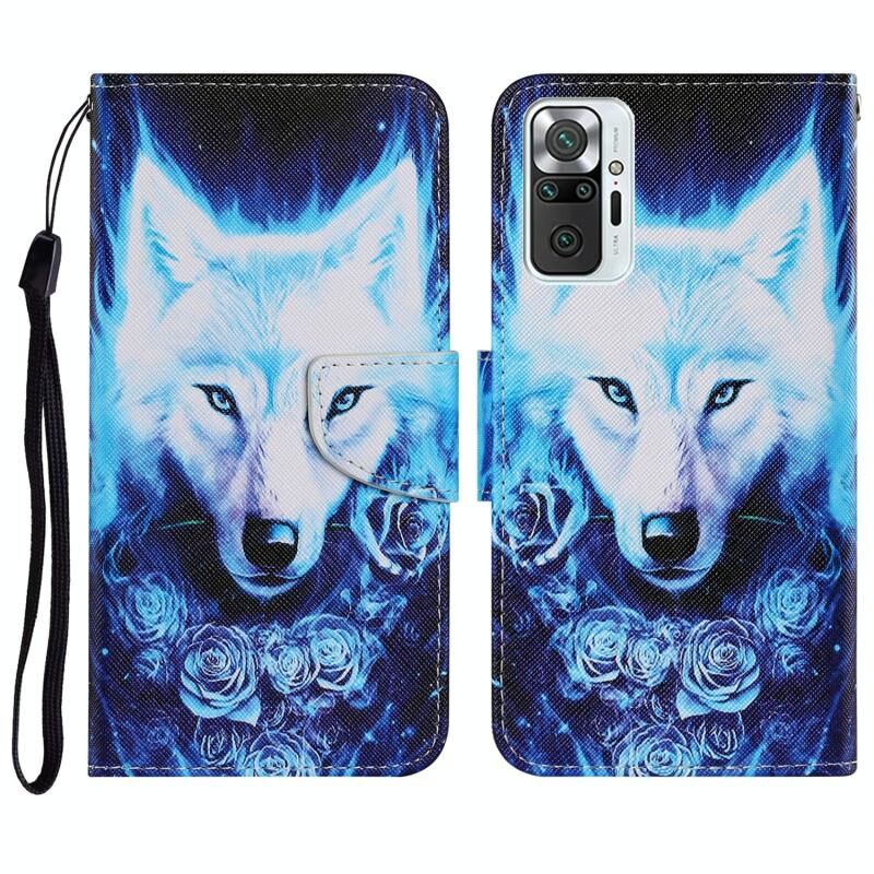 Θήκη για Xiaomi Redmi Note 10 Pro με έγχρωμο σχέδιο, οριζόντια αναδίπλωση από δερματίνη PU με βάση στήριξης & θήκες για κάρτες & πορτοφόλι & κορδόνι (Rose Wolf)
