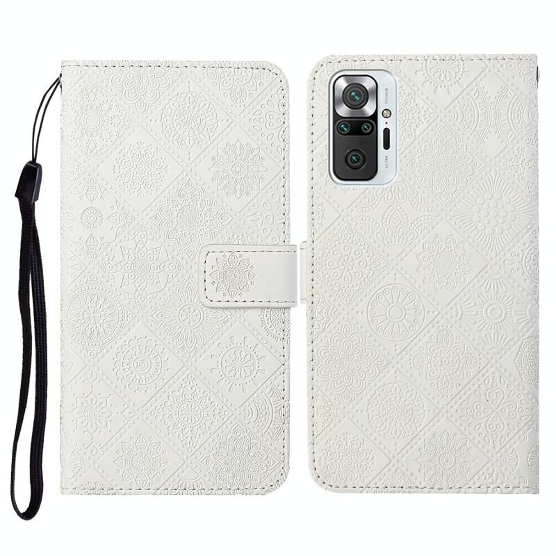 Για Xiaomi Redmi Note 10 Pro Ethnic Style ανάγλυφο μοτίβο οριζόντια Flip δερμάτινη θήκη με κάτοχο & υποδοχές για κάρτες & πορτοφόλι & κορδόνι (λευκό)