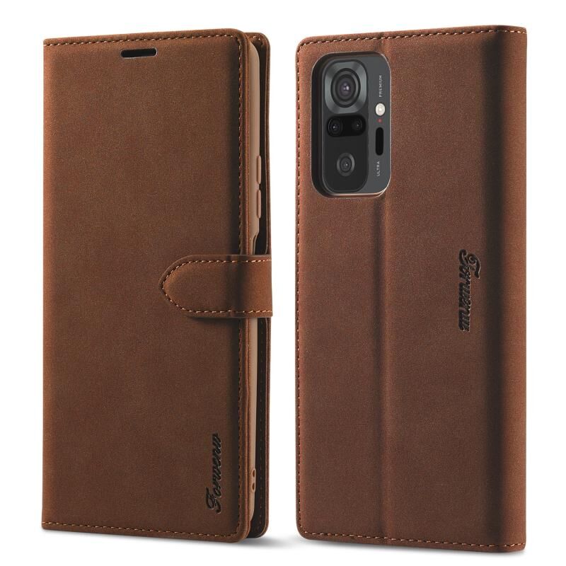 Για Xiaomi Redmi Note 10 Pro Forwenw F1 Σειρά Ματ Δυνατός Μαγνητισμός Οριζόντια Θήκη Δέρματος με Στήριξη & Θήκες Καρτών & Πορτοφόλι & Κορνίζα Φωτογραφιών (Καφέ) (Καφέ)