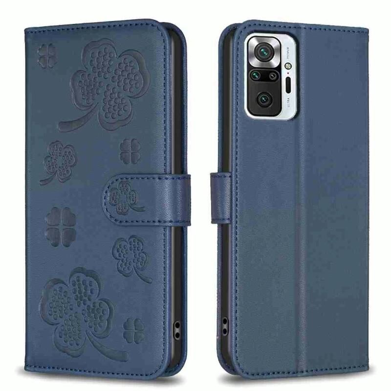 Για Xiaomi Redmi Note 10 Pro τετράφυλλο ανάγλυφη δερμάτινη θήκη τηλεφώνου (μπλε)