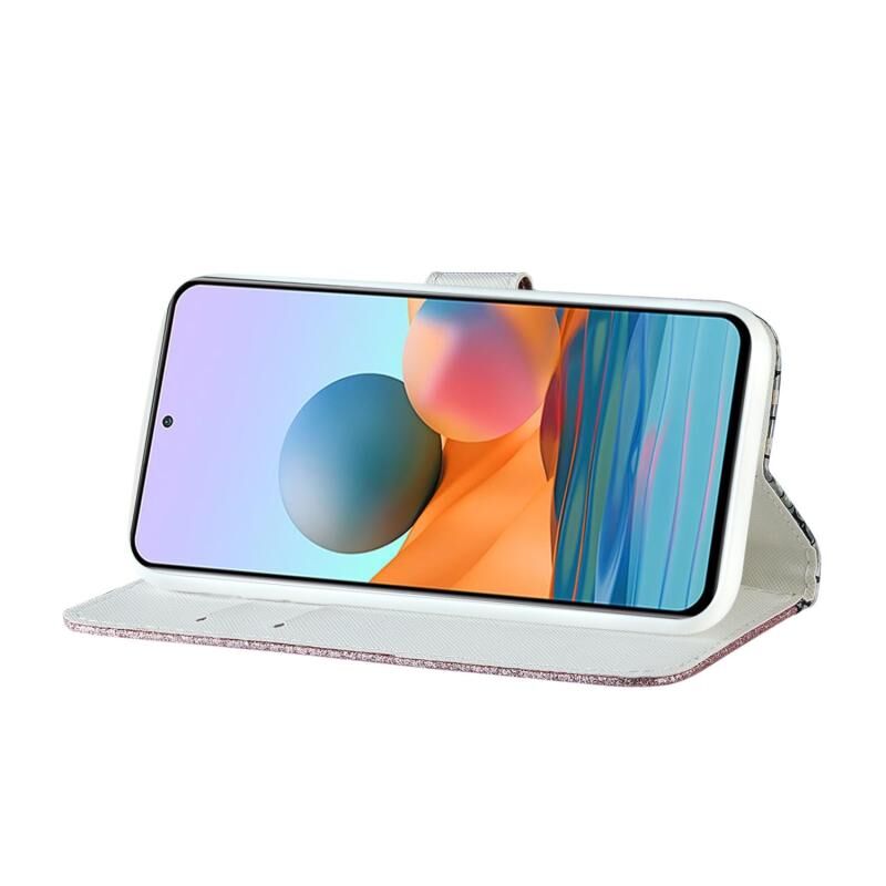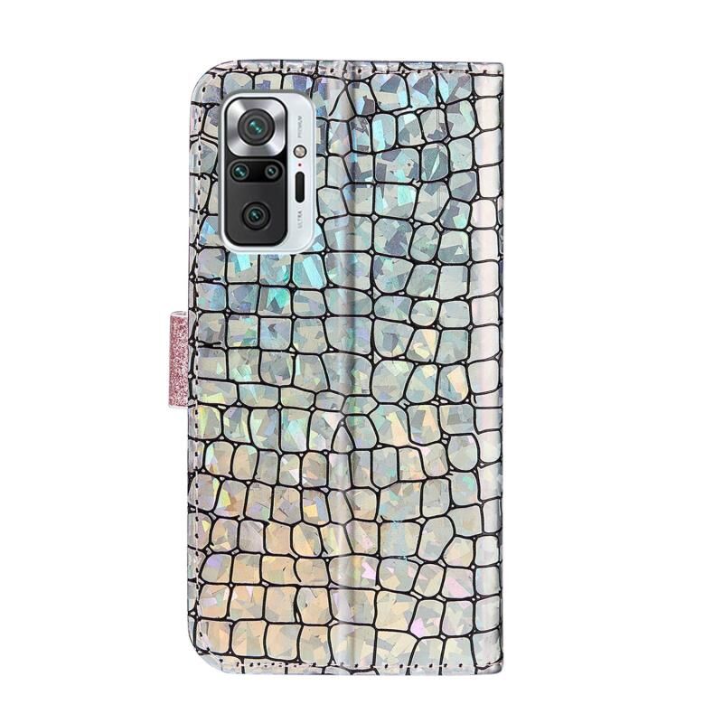 Θήκη δέρματος οριζόντιας αναδίπλωσης για Xiaomi Redmi Note 10 Pro με Λάμψη Laser, Σκόνη Γκλίτερ, Υφή Κροκόδειλου, Θήκες Καρτών & Στήριξη & Πορτοφόλι (Ασημί)