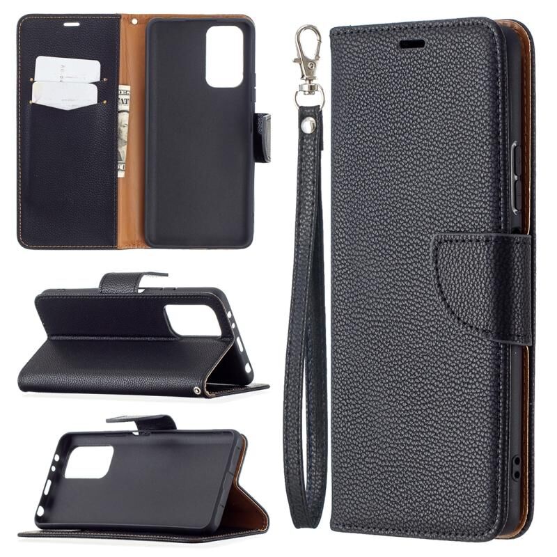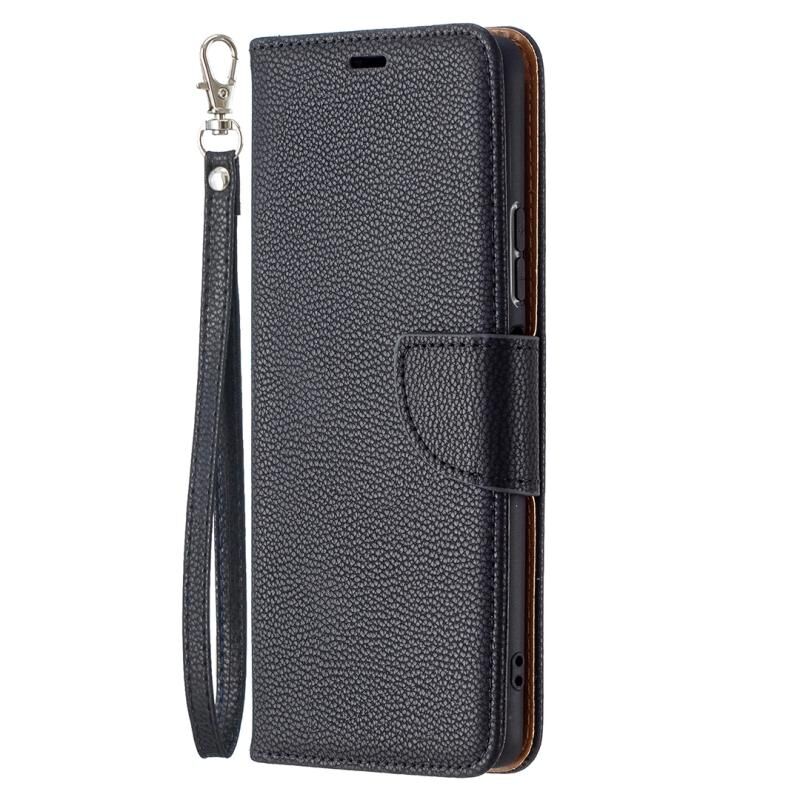 Για Xiaomi Redmi Note 10 Pro Litchi Texture Pure Color Οριζόντια Flip δερμάτινη θήκη με θήκη & υποδοχές για κάρτες & πορτοφόλι & κορδόνι (Μαύρο)