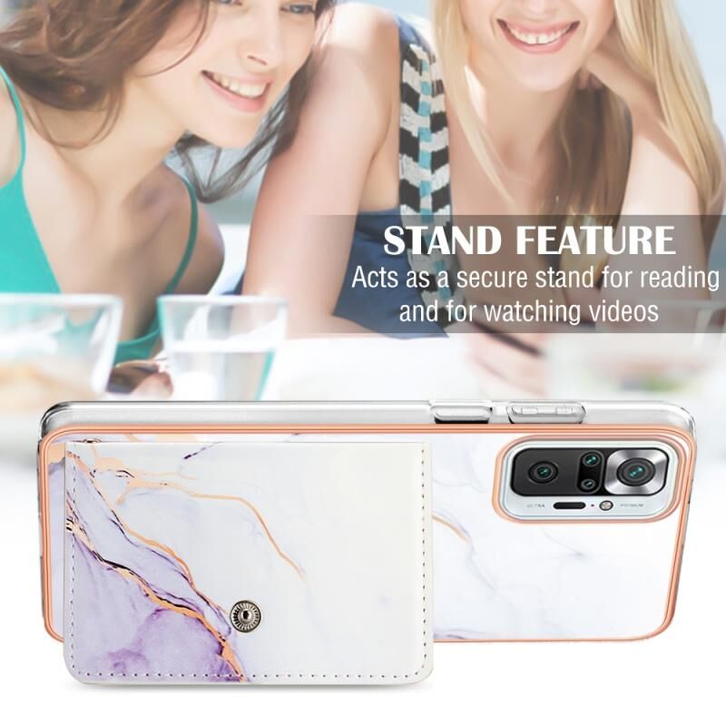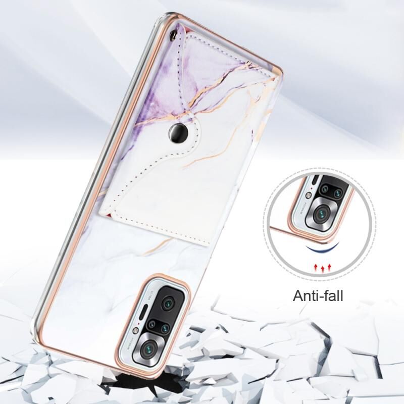 Θήκη κινητού τηλεφώνου με θήκη κάρτας IMD με σχέδιο μαρμάρου για Xiaomi Redmi Note 10 Pro (Λευκό Μωβ)