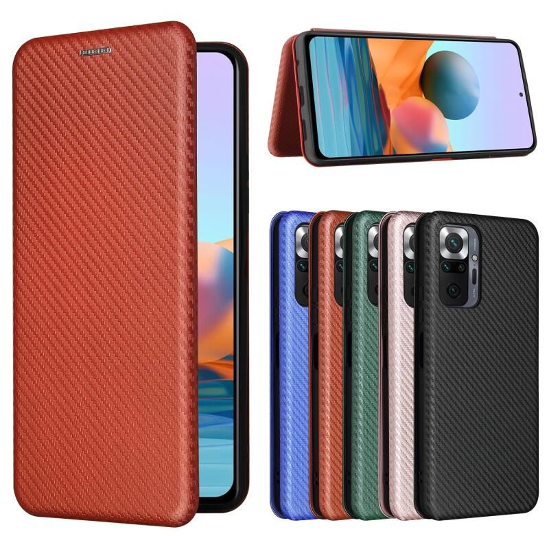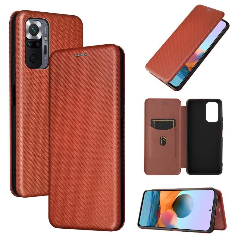 Για Xiaomi Redmi Note 10 Pro Max Carbon Fiber Texture Horizontal Flip TPU + PC + PU Leather Case με υποδοχή κάρτας (Καφέ)