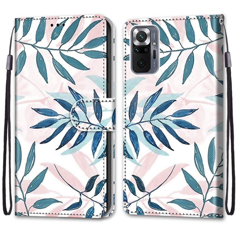 Θήκη για Xiaomi Redmi Note 10 Pro Max / Note 10 Pro με πολύχρωμο σχέδιο, υφή διασταυρούμενη, οριζόντια αναδίπλωση από δερματίνη PU με βάση & υποδοχές καρτών & πορτοφόλι & κορδόνι (Ροζ Πράσινο Φύλλο)