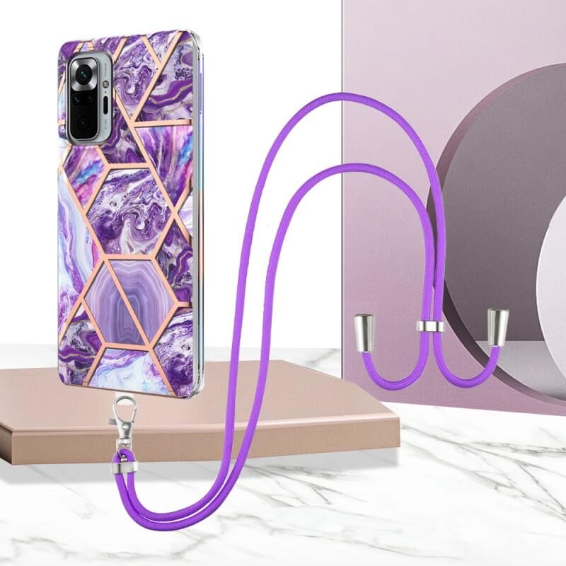 Θήκη τηλεφώνου TPU με ηλεκτρολυτική επιμετάλλωση και μαρμάρινο συνδυασμό για Xiaomi Redmi Note 10 Pro Max/Note 10 pro με κορδόνι (Σκούρο Μωβ)