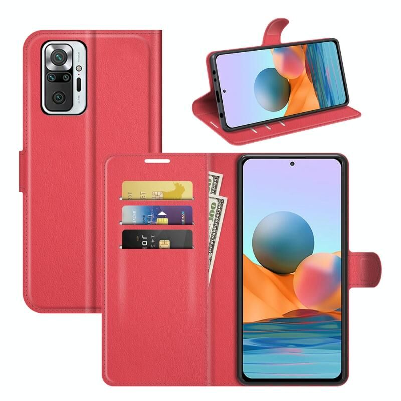 Για Xiaomi Redmi Note 10 Pro / Note 10 Pro (Ινδική Έκδοση) / Note 10 Pro Max Θήκη Προστασίας Οριζόντιας Αναδίπλωσης με Υφή Δέρματος Λύτσι, με Στήριξη & Θήκες Καρτών & Πορτοφόλι (Κόκκινο)