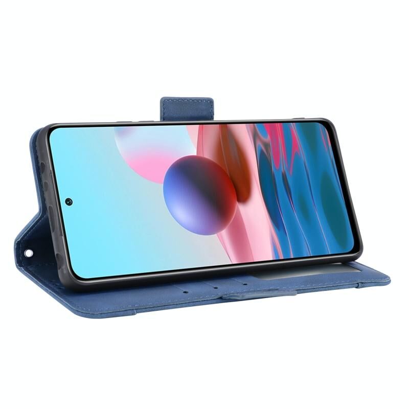Για Xiaomi Redmi Σημείωση 10 Pro / Σημείωση 10 Pro Max δέρμα αίσθηση μοσχάρι μοτίβο οριζόντια Flip δερμάτινη θήκη με κάτοχο & υποδοχές καρτών & πλαίσιο φωτογραφιών (Μπλε)