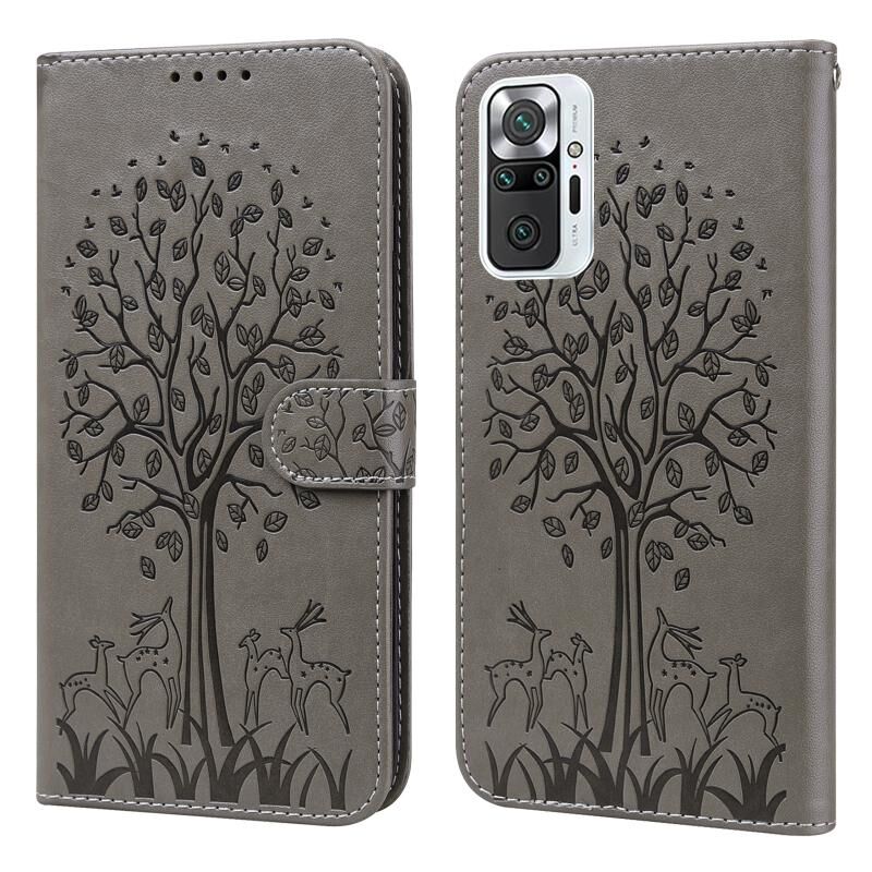 Θήκη τηλεφώνου από δέρμα με σχέδιο δέντρου και ελαφιού, τύπου flip, για Xiaomi Redmi Note 10 Pro / Note 10 Pro Max (Μωβ)