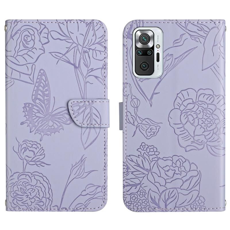 Θήκη τηλεφώνου από δέρμα με ανάγλυφο σχέδιο πεταλούδας και παιώνιας για Xiaomi Purplemi Note 10 Pro, με αίσθηση δέρματος (Κόκκινο)