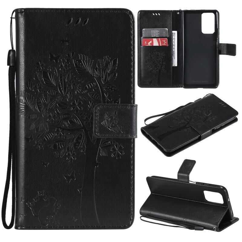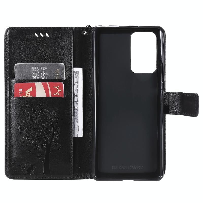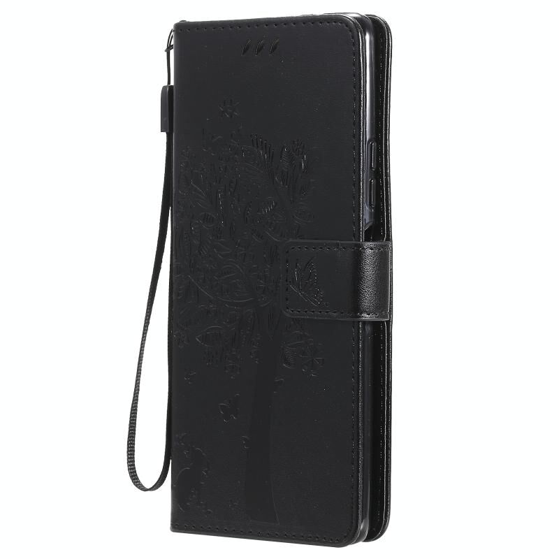 Θήκη για Xiaomi Redmi Note 10 Pro με σχέδιο Δέντρου & Γάτας, εκτύπωση με πίεση, οριζόντια αναδίπλωση, από δερματίνη PU με βάση στήριξης & θήκες καρτών & πορτοφόλι & κορδόνι (Πράσινο)