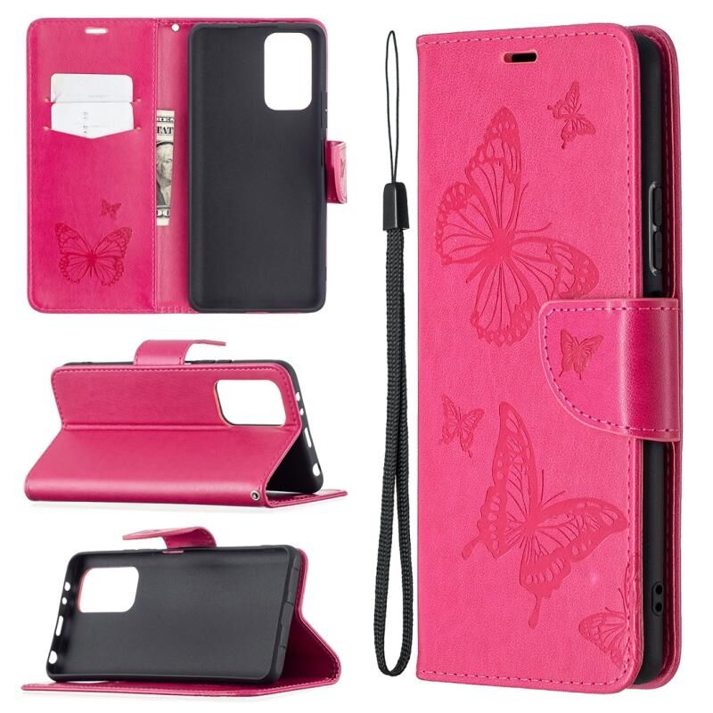 Για Xiaomi Redmi Note 10 Pro Δύο πεταλούδες ανάγλυφο μοτίβο οριζόντια Flip δερμάτινη θήκη με κάτοχο & υποδοχή για κάρτες & πορτοφόλι & κορδόνι (Rose Red)