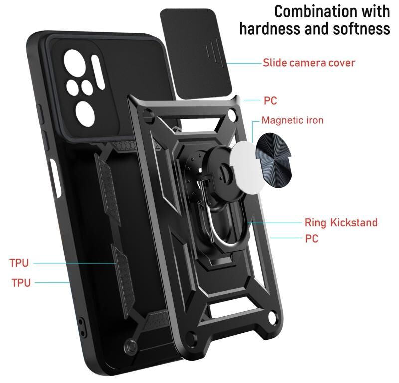 Για Xiaomi Redmi Note 10 συρόμενη κάμερα κάλυμμα Design TPU + PC προστατευτική θήκη (μαύρο)
