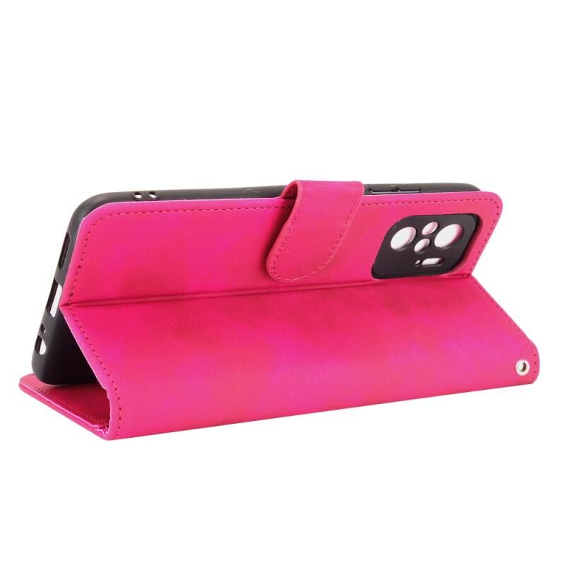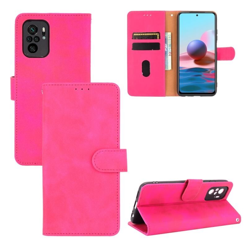 Για Xiaomi Redmi Σημείωση 10 Αμιγές χρώμα δέρμα αίσθηση μαγνητική πόρπη οριζόντια Flip μοσχάρι υφή PU δέρμα υπόθεση με κάτοχο & υποδοχές καρτών & πορτοφόλι (Rose Red)