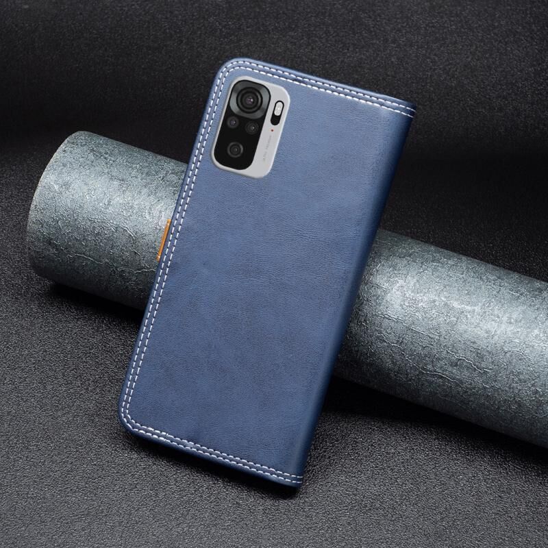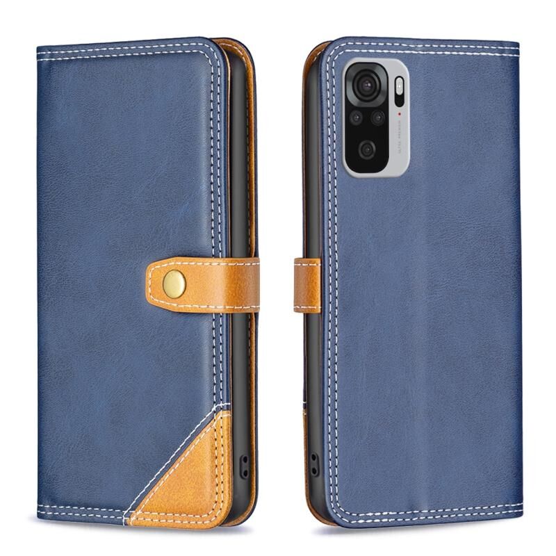 Θήκη τηλεφώνου από δέρμα με διπλή ραφή και αντιστοίχιση χρωμάτων για Xiaomi Redmi Note 10S (Μαύρο)