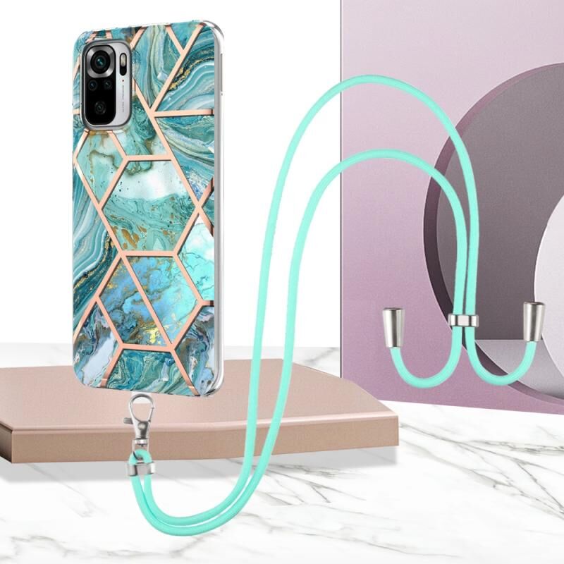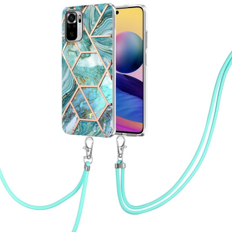 Θήκη τηλεφώνου TPU με ηλεκτρολυτική επιμετάλλωση και μαρμάρινο συνδυασμό για Xiaomi Redmi Note 10s/Note 10 4G με κορδόνι (Σκούρο Μωβ)