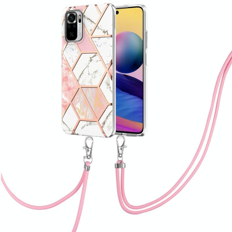 Θήκη τηλεφώνου TPU με ηλεκτρολυτική επιμετάλλωση και μαρμάρινο συνδυασμό για Xiaomi Redmi Note 10s/Note 10 4G με κορδόνι (Σκούρο Μωβ)