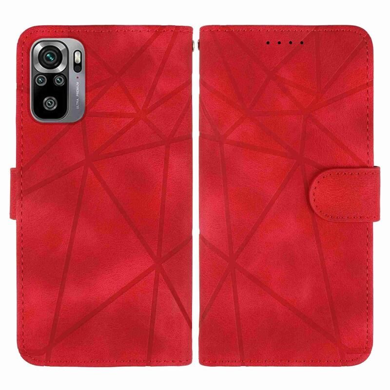 Για Xiaomi Redmi Note 10S δέρμα αίσθηση γεωμετρικές γραμμές δερμάτινη θήκη τηλεφώνου (κόκκινο)