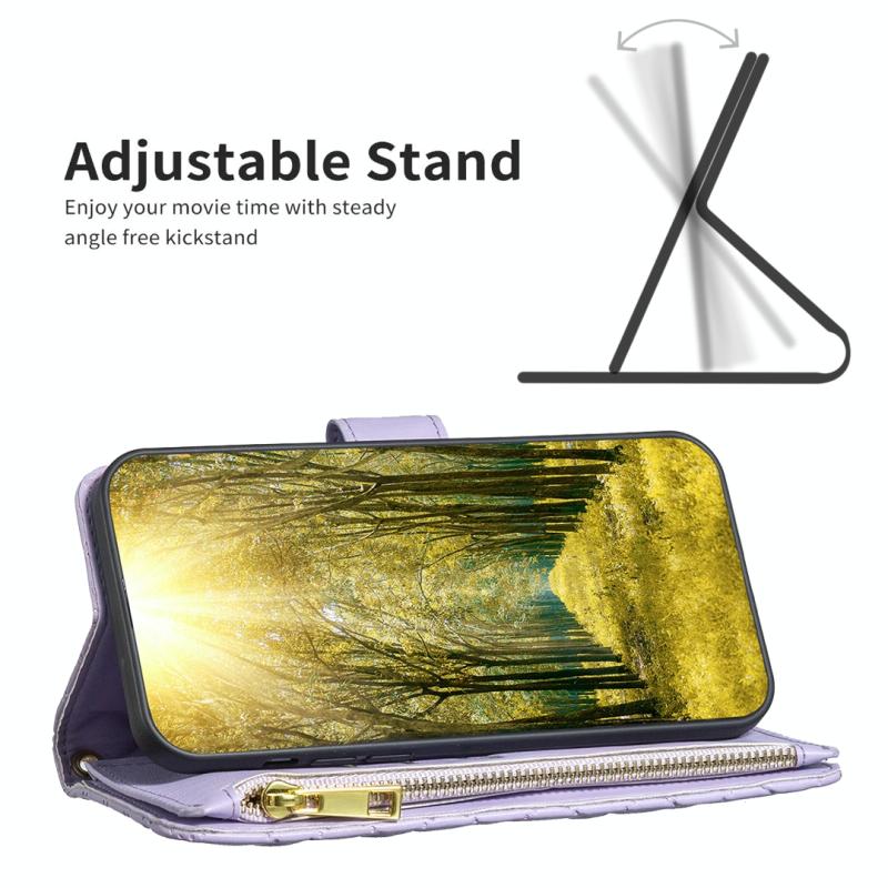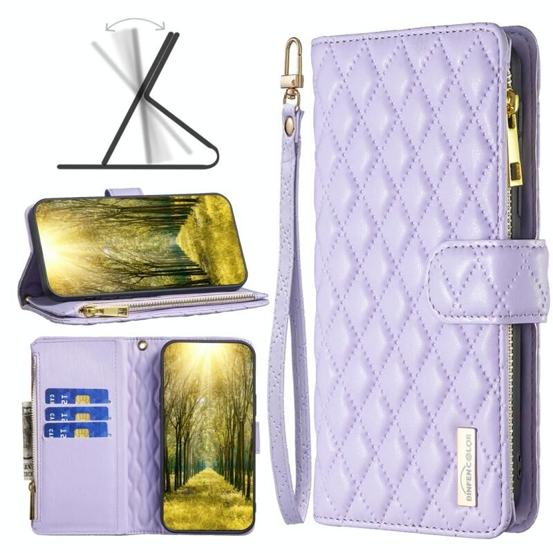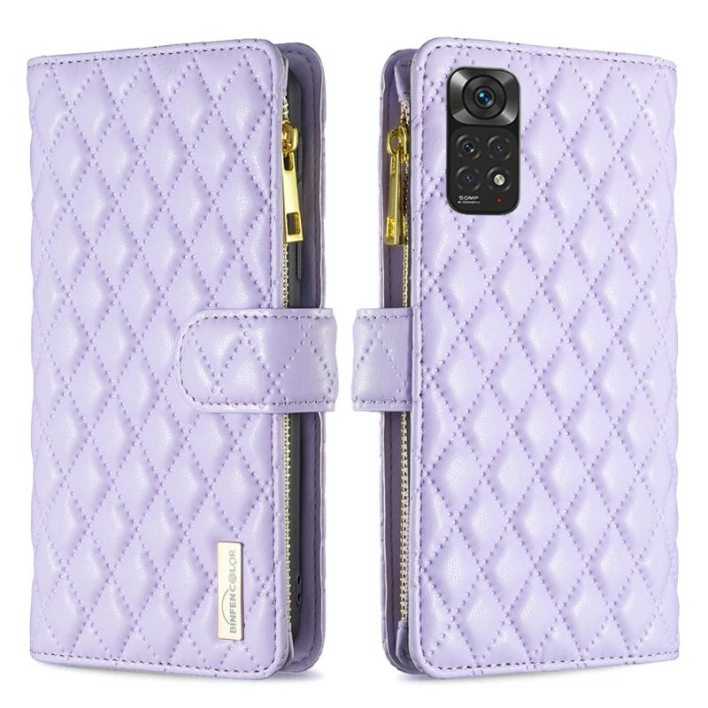 Για Xiaomi Redmi Note 11 / 11S Global Δερμάτινη θήκη πορτοφόλι με φερμουάρ και διαμαντένιο σχέδιο. (Μωβ)