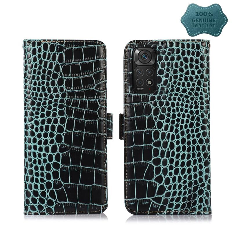 Θήκη δέρματος Xiaomi Redmi Note 11 4G/11S 4G Global από γνήσιο δέρμα κροκόδειλου (Πράσινο)