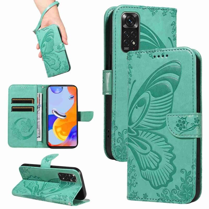 Θήκη τηλεφώνου από δέρμα με ανάγλυφο σχέδιο πεταλούδας Swallowtail για Xiaomi Redmi Note 11 4G / 11S (πράσινο)