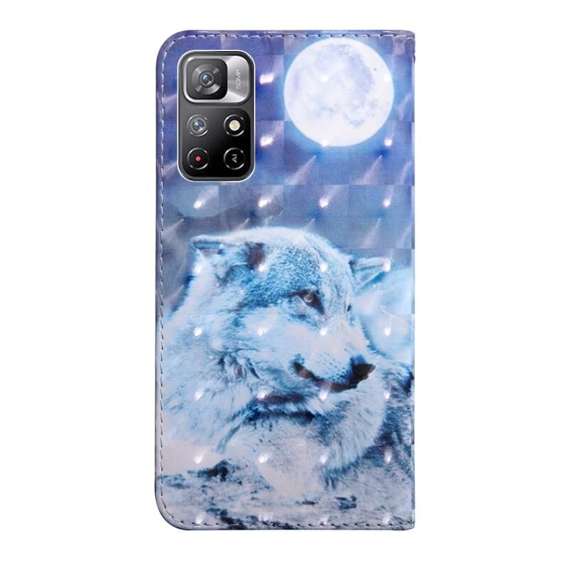 Θήκη τηλεφώνου δερμάτινη με σχέδιο 3D ζωγραφικής και πολύχρωμη απεικόνιση για Xiaomi Redmi Note 11 4G (Λύκος)